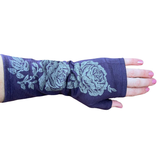 Merino Wool Gloves - Purple and Silver Rose