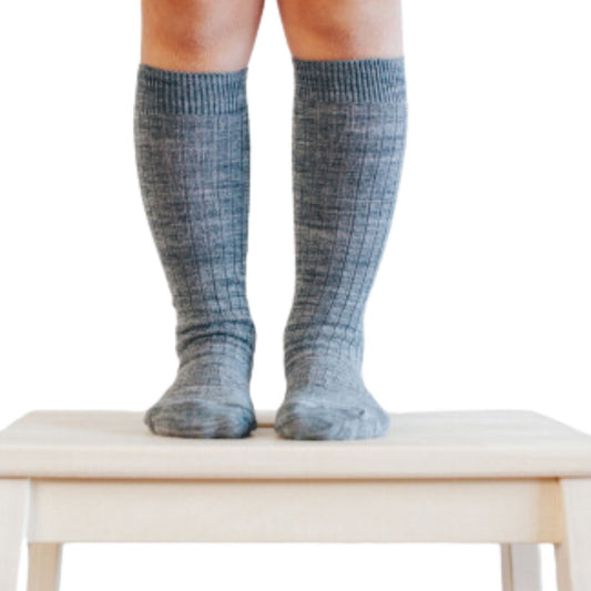Merino Wool Knee High Rib Socks - Grey