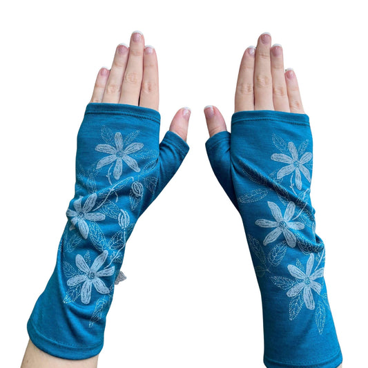 Sold outMerino Wool Gloves - Teal Clematis